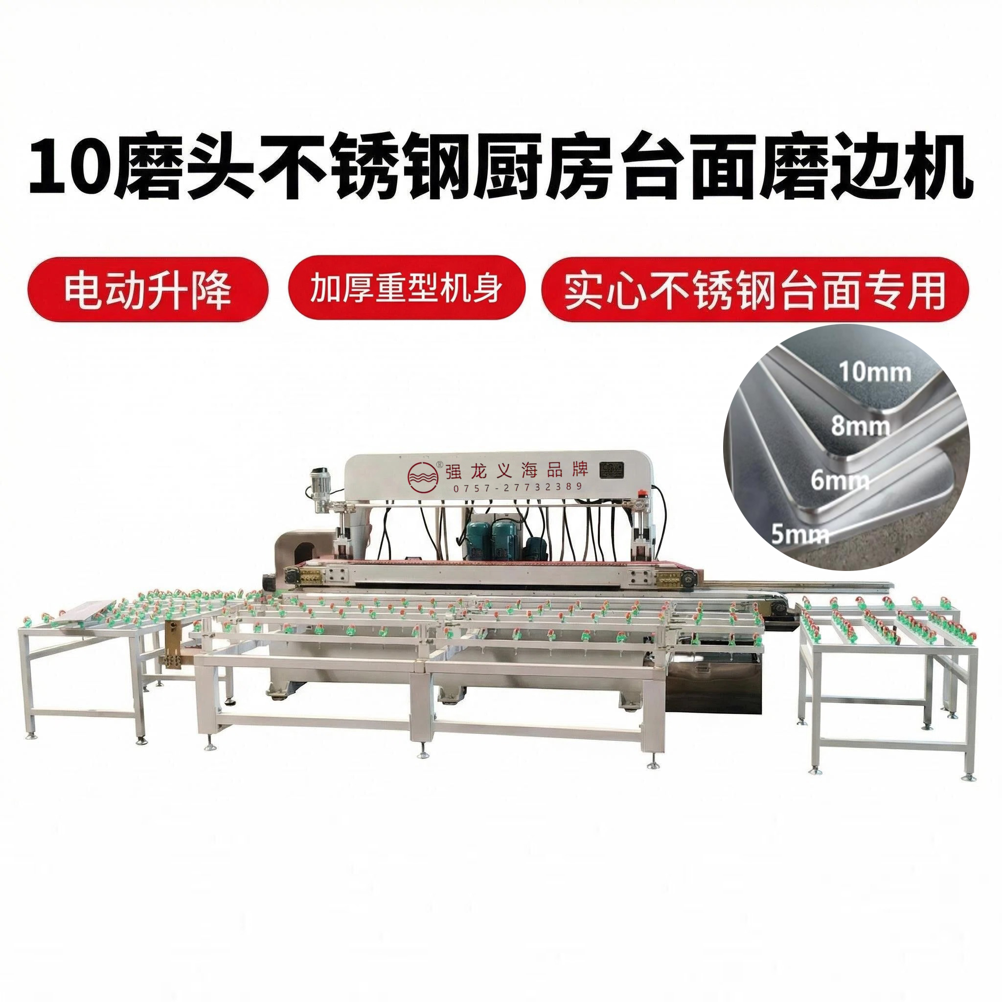一台10 磨头卧式直边机,粗磨→精抛→拉丝→倒角全搞定,成品又亮又直又丝滑!